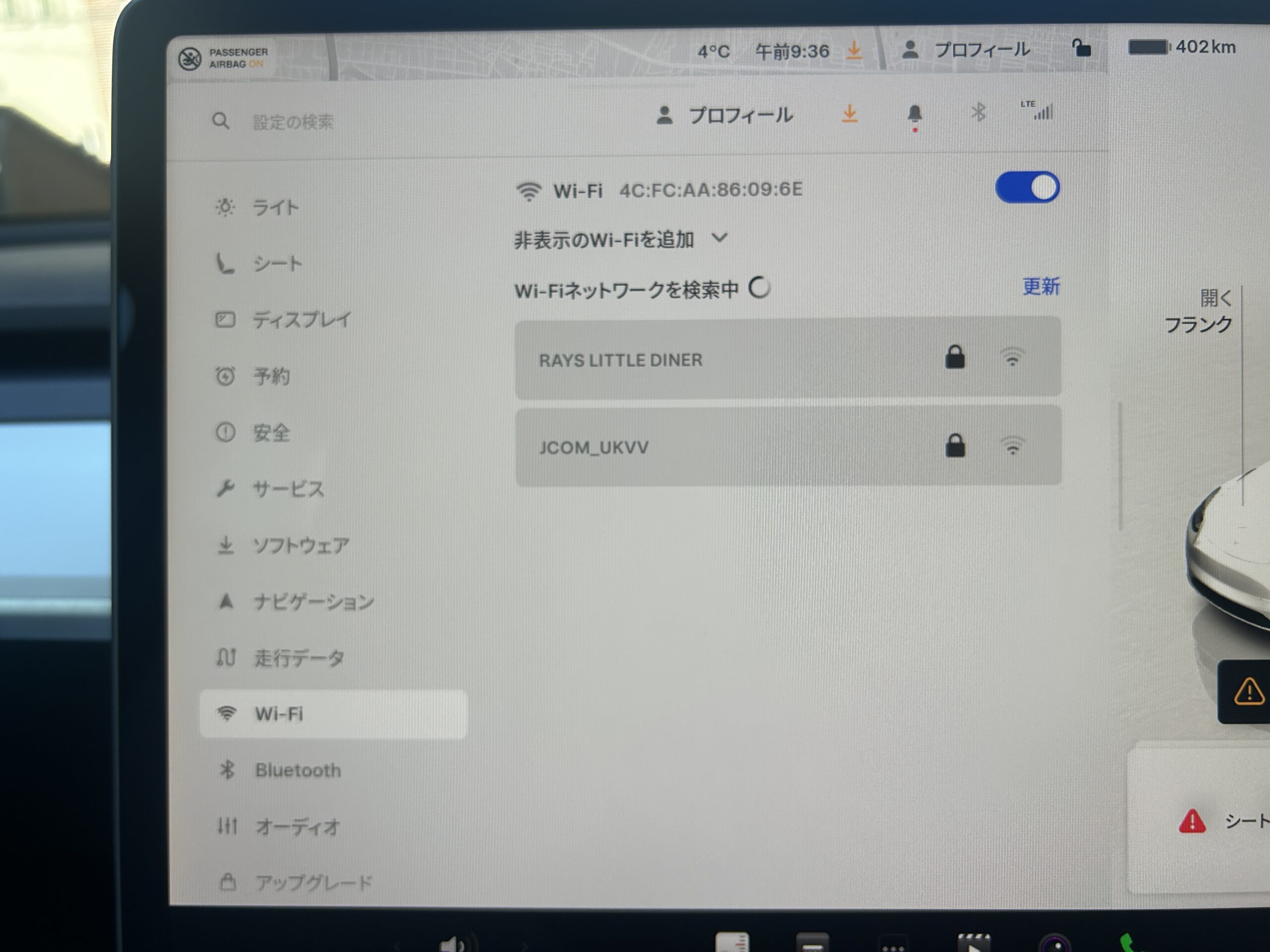後席モニター